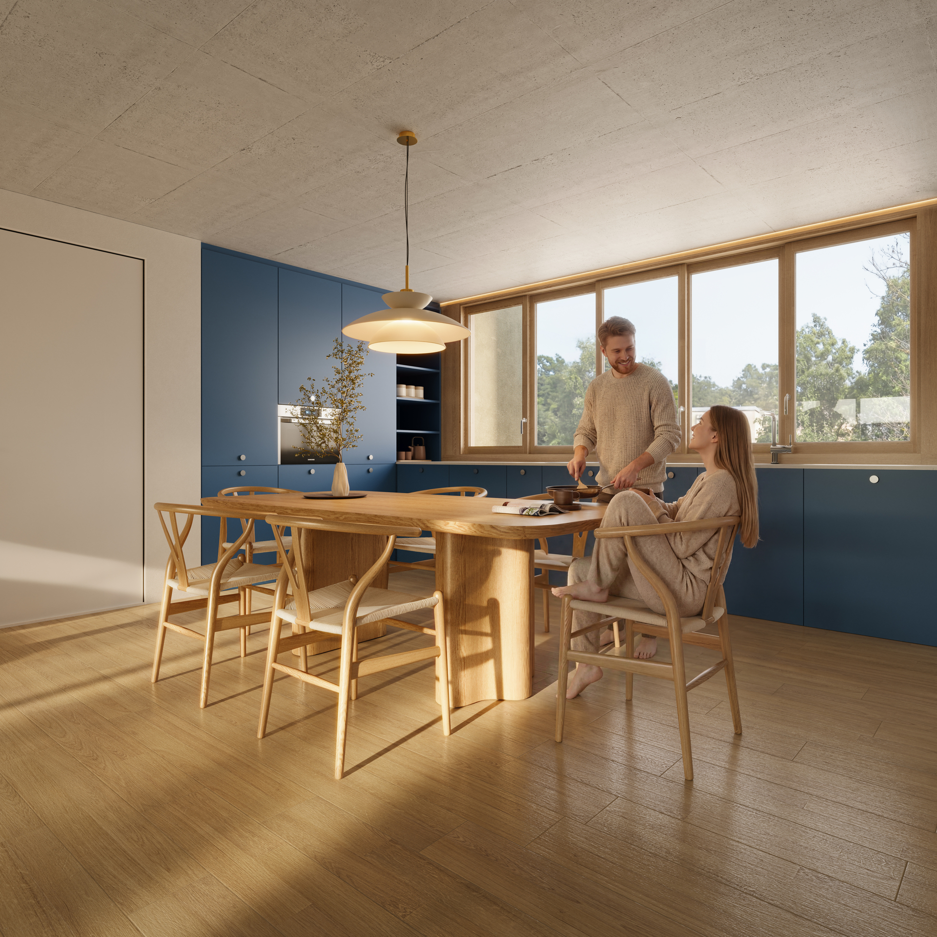 Finition haute qualité : Budget de finitions généreux, complété par des fenêtres à cadres en bois avec triple vitrage